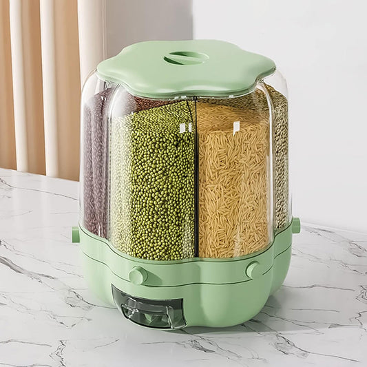 6-Grid Rotating Food Dispenser - Grain Storage Box