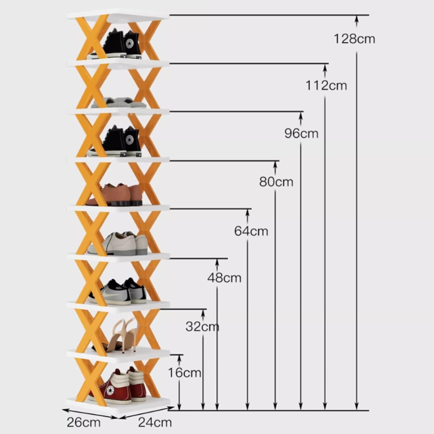 Maximize your entryway organization with this sleek X-shaped shoe rack, engineered for both form and function. The distinctive crossed-frame design provides stable support for multiple pairs while maintaining a compact footprint ideal for bedrooms, hallways, or living spaces. Constructed with durable materials, this rack accommodates various shoe sizes and styles without warping or sagging. The open architecture allows air circulation to keep footwear fresh, while the minimalist aesthetic complements any interior décor. Perfect for households seeking practical storage solutions that don't compromise on style or stability.